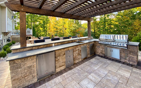 Pearl Landscaping & Patio has installed custom outdoor kitchens featuring refrigerators, ice makers, trash compactors, wine bars, ovens, grills, wood fired ovens, islands and just about anything else you can imagine. All of our outdoor kitchen and cooking areas are customized to fit your lifestyle. Materials we typically use for outdoor kitchens and grills to create a custom look and feel to meet the individualized needs of the client.